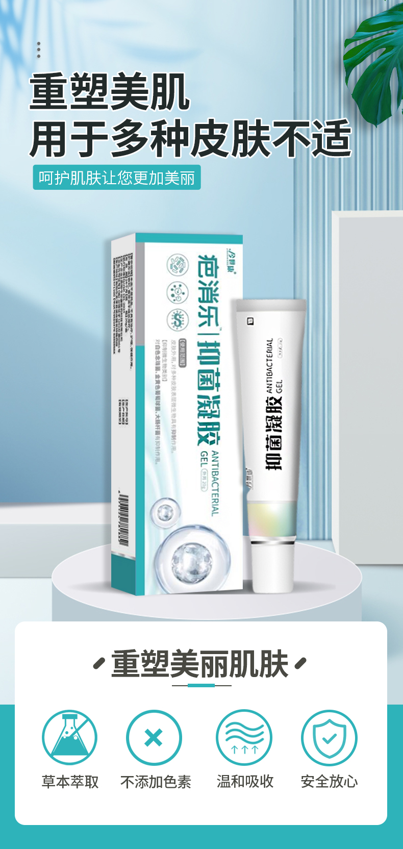 疤消樂抑菌凝膠,選多種植物草本精粹,適用于皮膚不適的亞健康人群,給皮膚多重呵護,凝膠生產廠家,支持不同材質、規格、形狀、包裝設計,滿足多種渠道需求的凝膠加工一站式oem貼牌定制服務。
