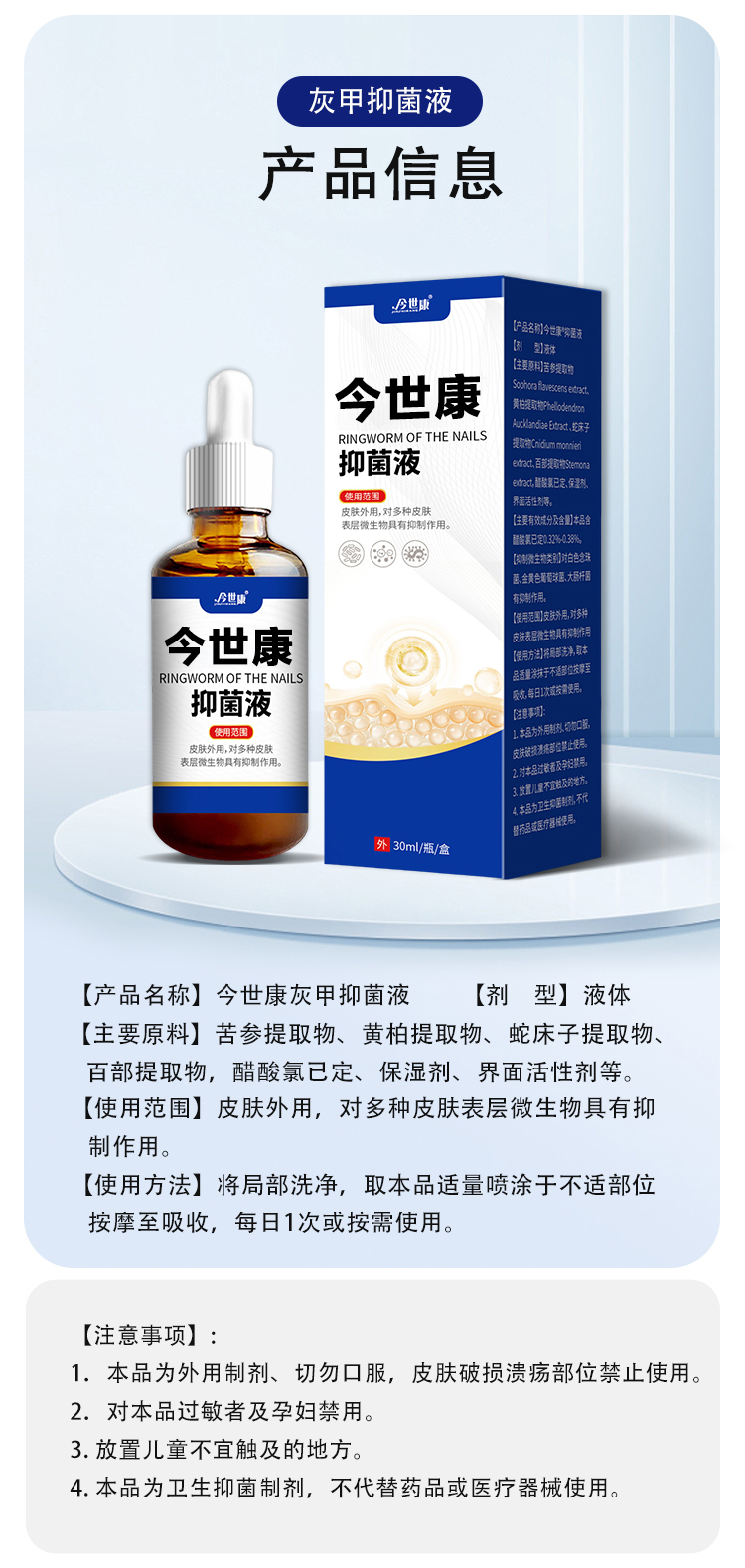 灰趾甲抑菌液,是今世康廠家專為灰趾甲研制,用于腳指甲灰趾甲、指甲萎縮、凹凸不平等指甲問題,給指甲多重呵護,遠離灰甲,抑菌液生產廠家,支持不同材質、規格、形狀、包裝設計,滿足多種渠道需求的抑菌液體加工一站式oem貼牌定制服務。