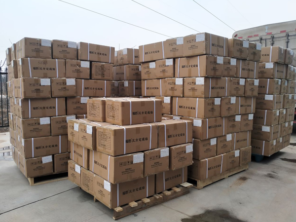 今世康膏藥廠家50萬貼傳統黑膏藥貼牌產品發貨現場。2月初,新年伊始新氣象,在今世康廠區等待裝貨的大貨車再次形成壯觀場面,今世康膏藥貼牌廠家倉儲物流人員一大早便忙起來為膏藥貼加工包裝好的成品裝車發貨,穿梭于庫房與貨車來回之間。又開啟了忙碌的時刻,發貨現場也給人充滿斗志與活力。目前每天都在趕發貨進度,而且膏藥貼牌加工訂單還在持續增加中。發貨不停歇,只為客戶能早日解決銷售及補貨問題。